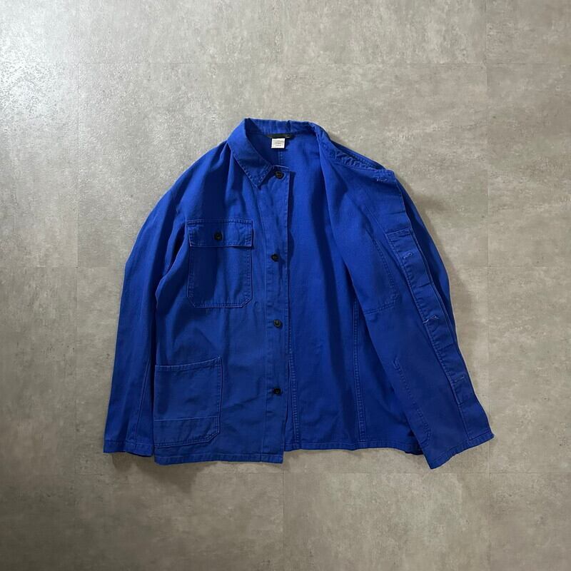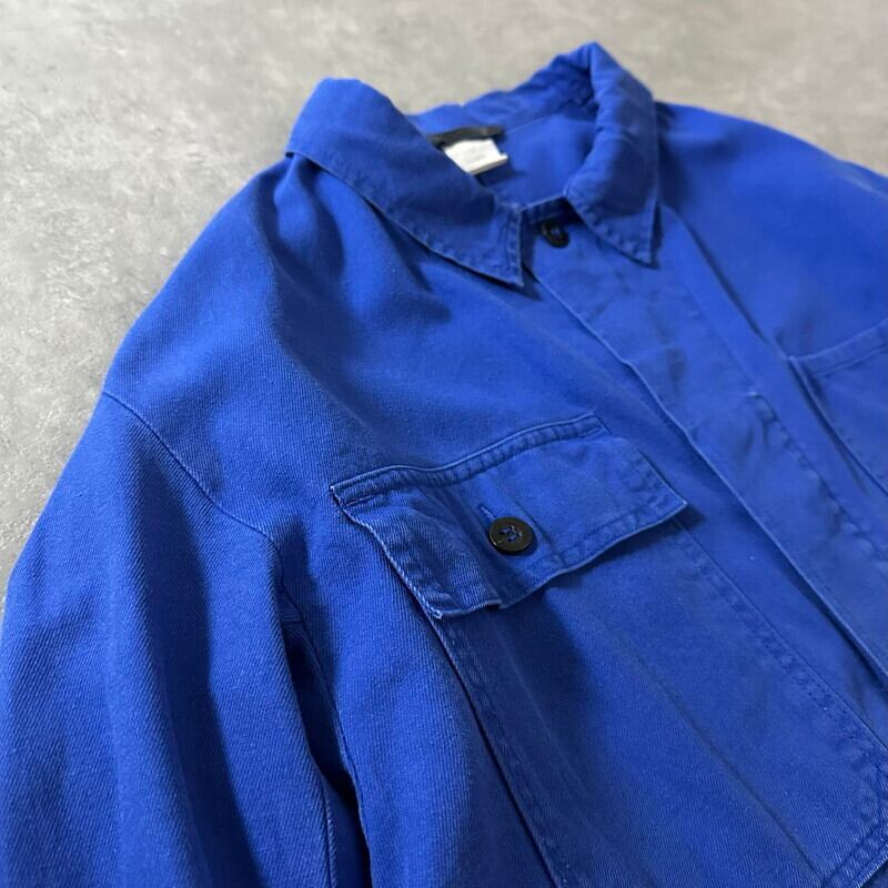90s ドイツ ブルー コットン ユーロ ワークジャケット サイズ表記52【JK-0086B】
