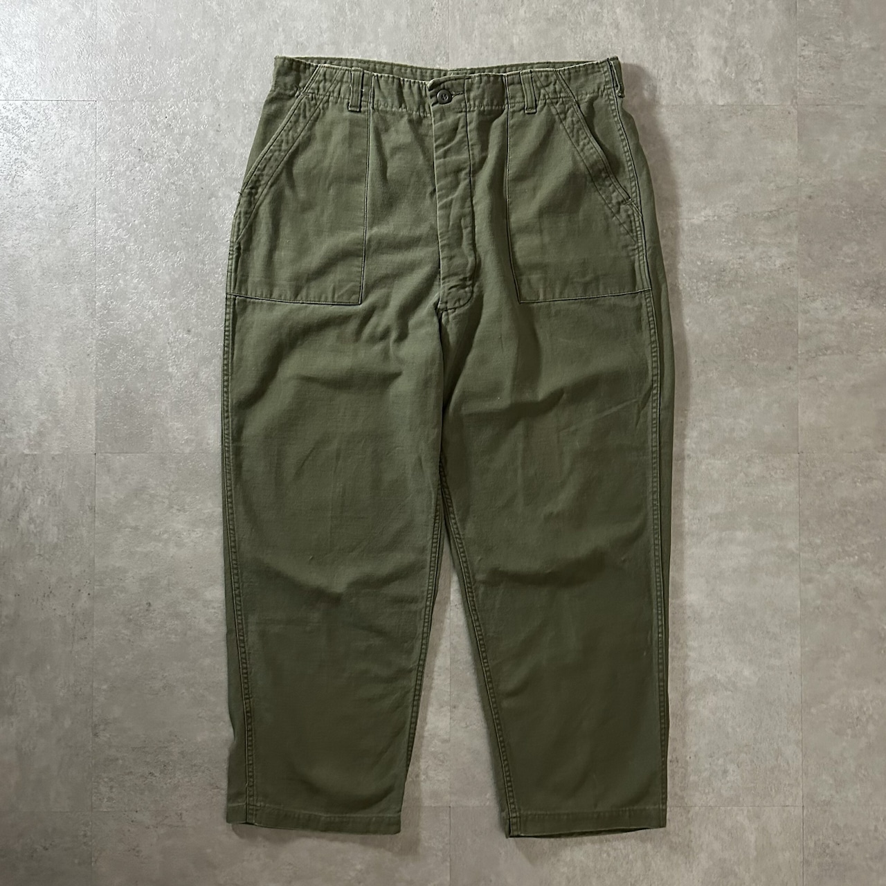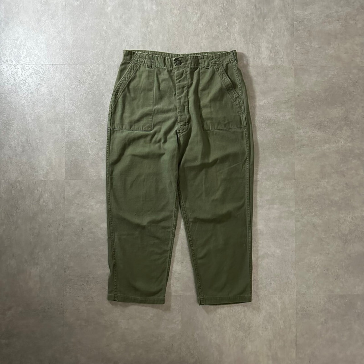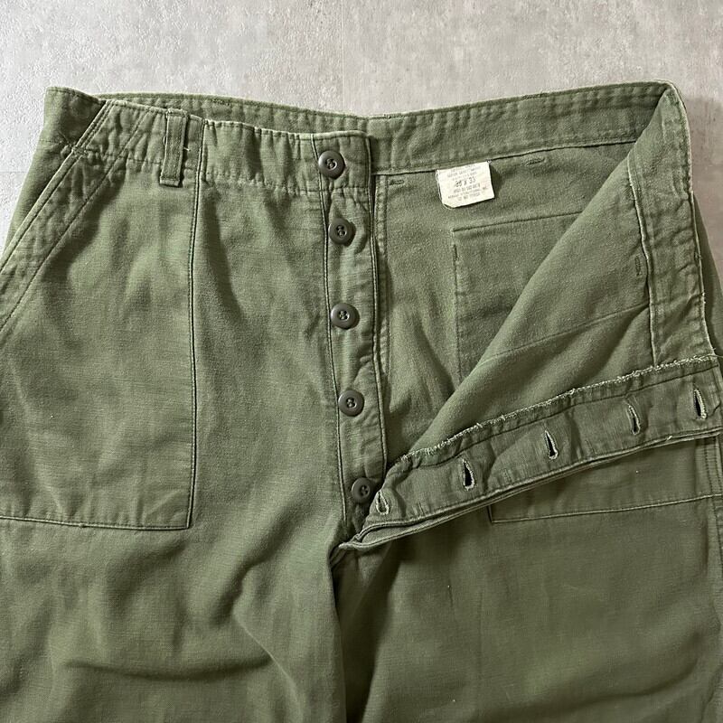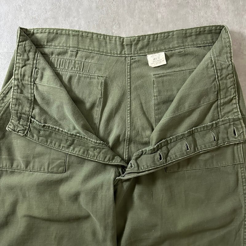 【レアサイズ】70s アメリカ軍 OG-107 コットンサテン ベイカーパンツ フロントボタンタイプ サイズ38x33