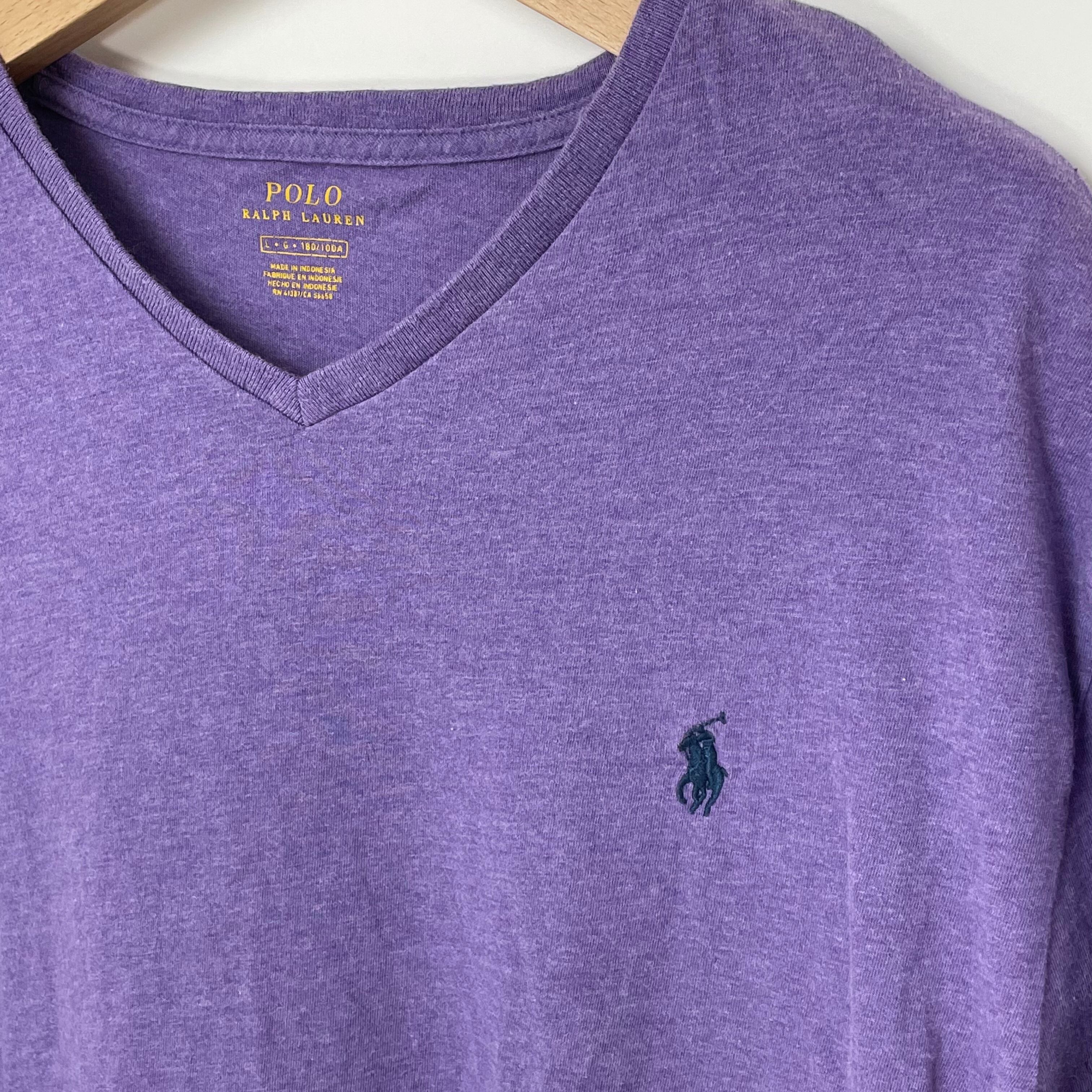 POLO Ralph Lauren/ポロ・ラルフローレン パープル コットン VネックTシャツ Lサイズ