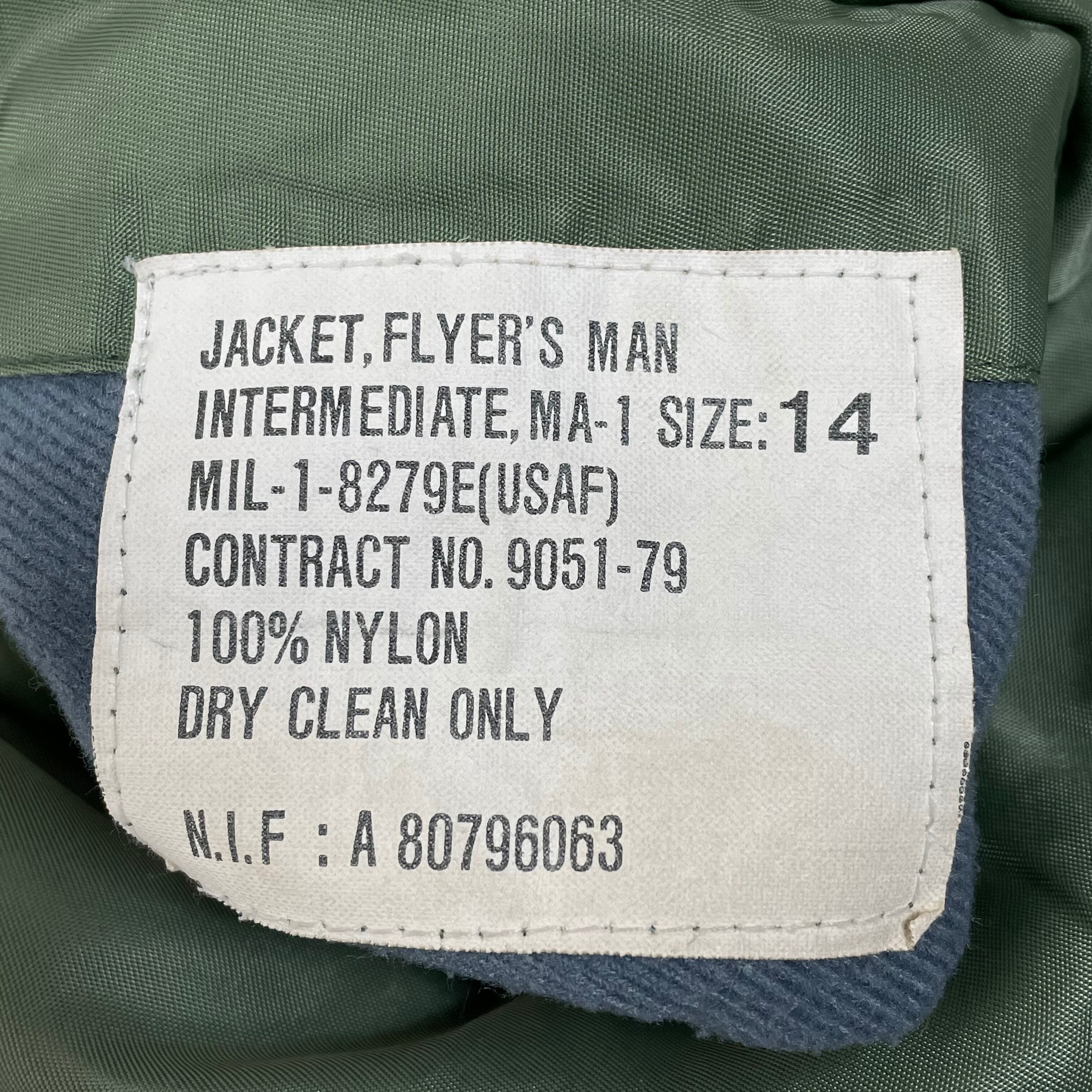 USAF MA-1 フライトジャケット MIL-1-8279E サイズ表記14